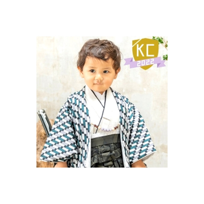 (加藤商店)KATO 533-2012 男の子 2才 羽織袴セット ポリ 緑/モダン格子 45cm