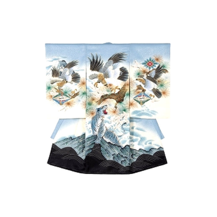 人生で初めて袖を通す晴れ着は、初着と呼ばれ、男の子が強くたくましく育ちますようにという願いが込められた柄が描かれています。