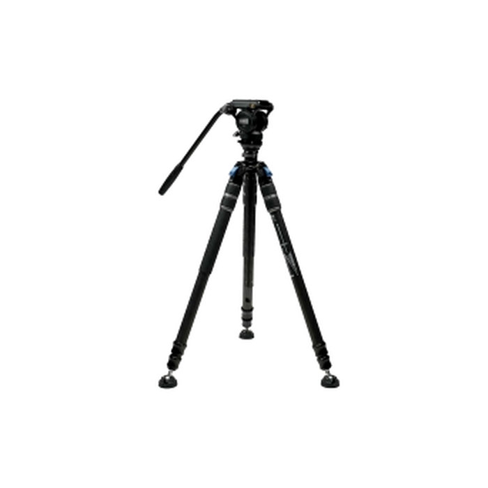 ハンドルツイストロックを一個所回すだけで、脚部のロック/ロック解除が可能なワンステップ高さ調整システムを採用した三脚+ビデオ雲台のセット
